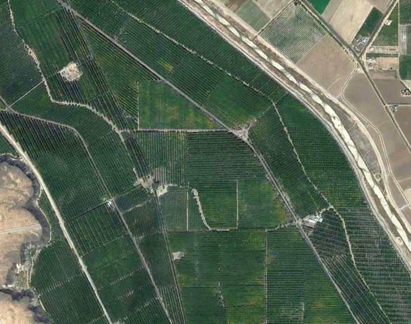 A 2014 aerial view looking northeast showed the 2 former runways at Stahmann Farms Airfield remained intact.