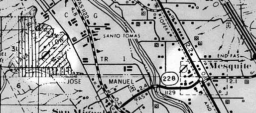 The only map depiction of the Mesquite Airfield which has been located was on a 1967 NM State Land Office map.