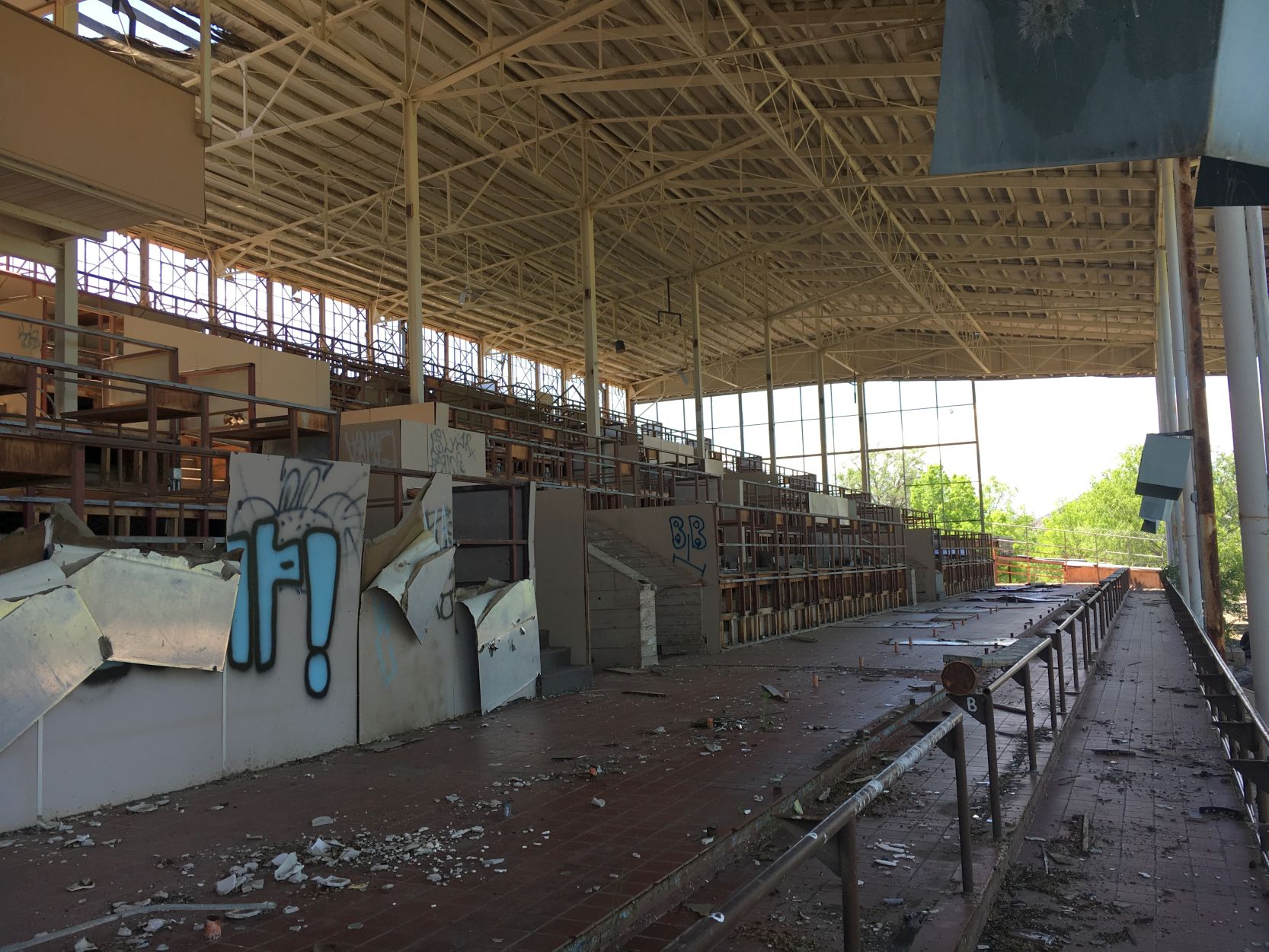 The grandstand used for its construction came from Arlington Downs in Dallas & was reassembled in Raton.