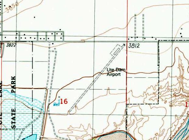 It depicted “Ute Dam Airport” as having a single unpaved southwest/northeast runway, with an unpaved ramp on the north side.