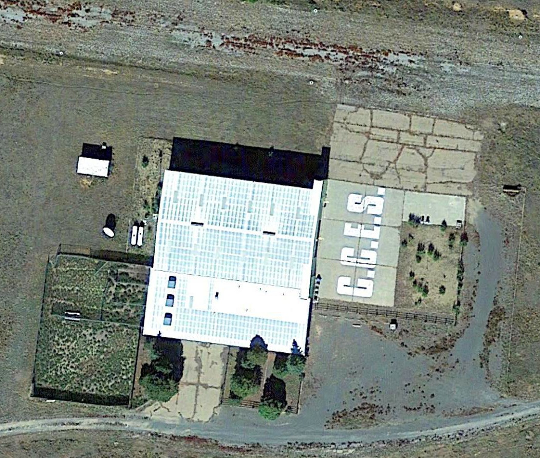 A 2015 aerial view looking northwest showed the CCES Airfield to remain intact, though the runways were somewhat deteriorated.