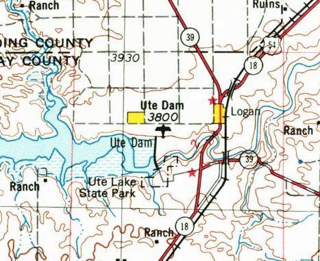 Fred De Guio reported, “Prior to 1985, the NM Aeronautical Charts depicted the airfield as 'Logan-Ute Dam'.”