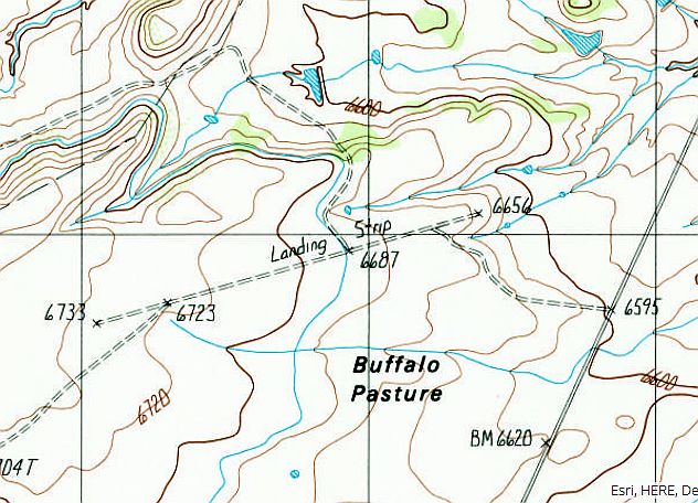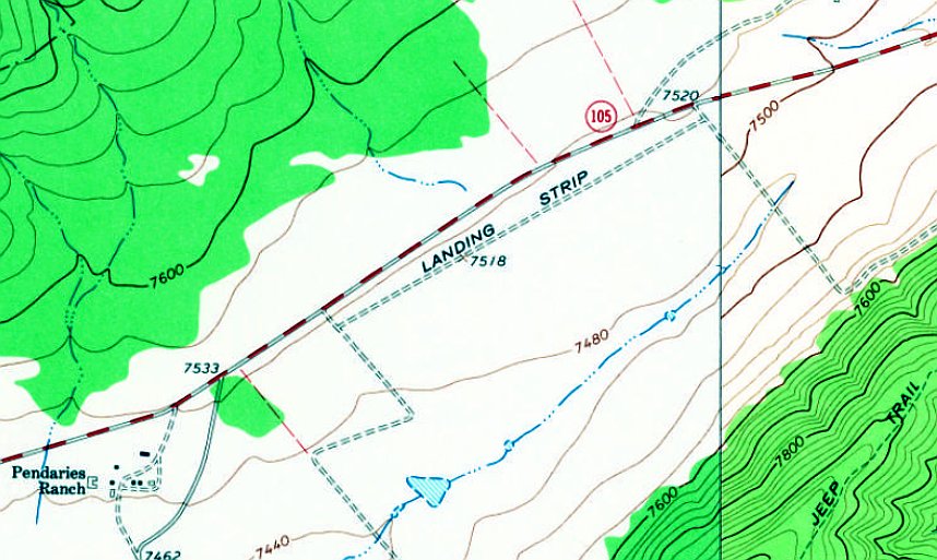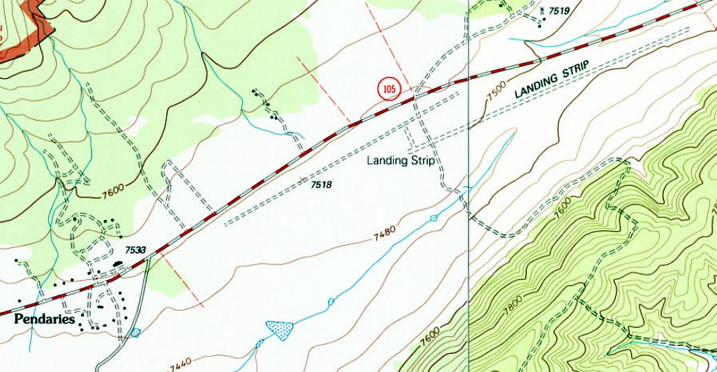 The 1987 USGS topo map depicted a single northeast/southwest “Landing Strip”.