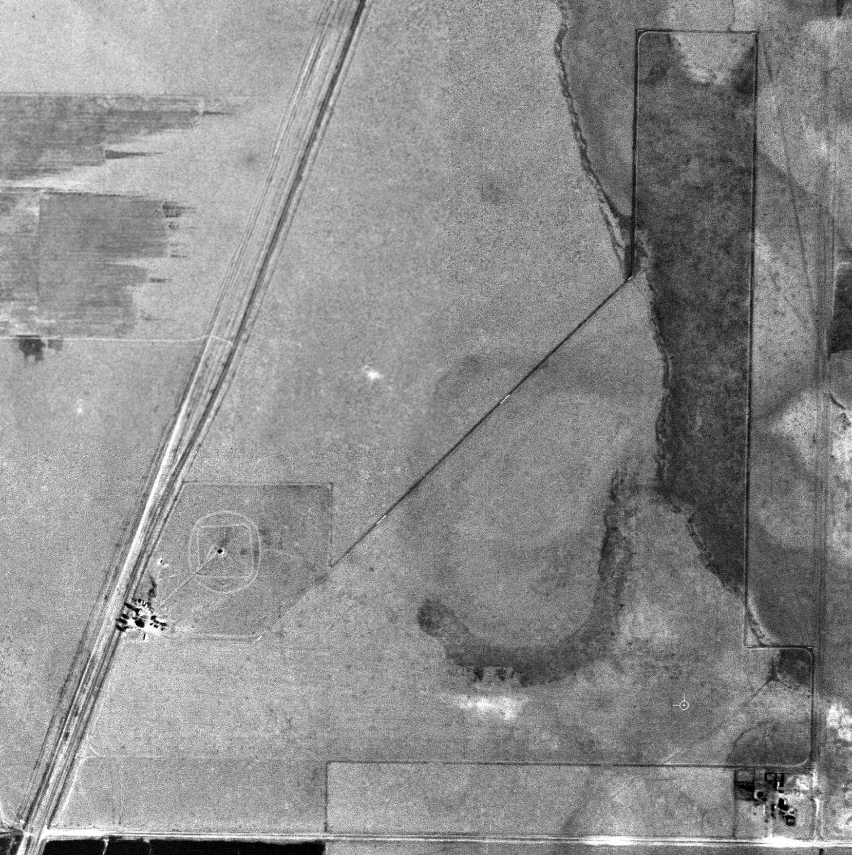 The earliest photo which has been located of Ute Dam Airfield was a 1967 aerial view.
