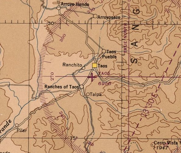 The original airport for the town of Taos was located on the southwest side of the town.