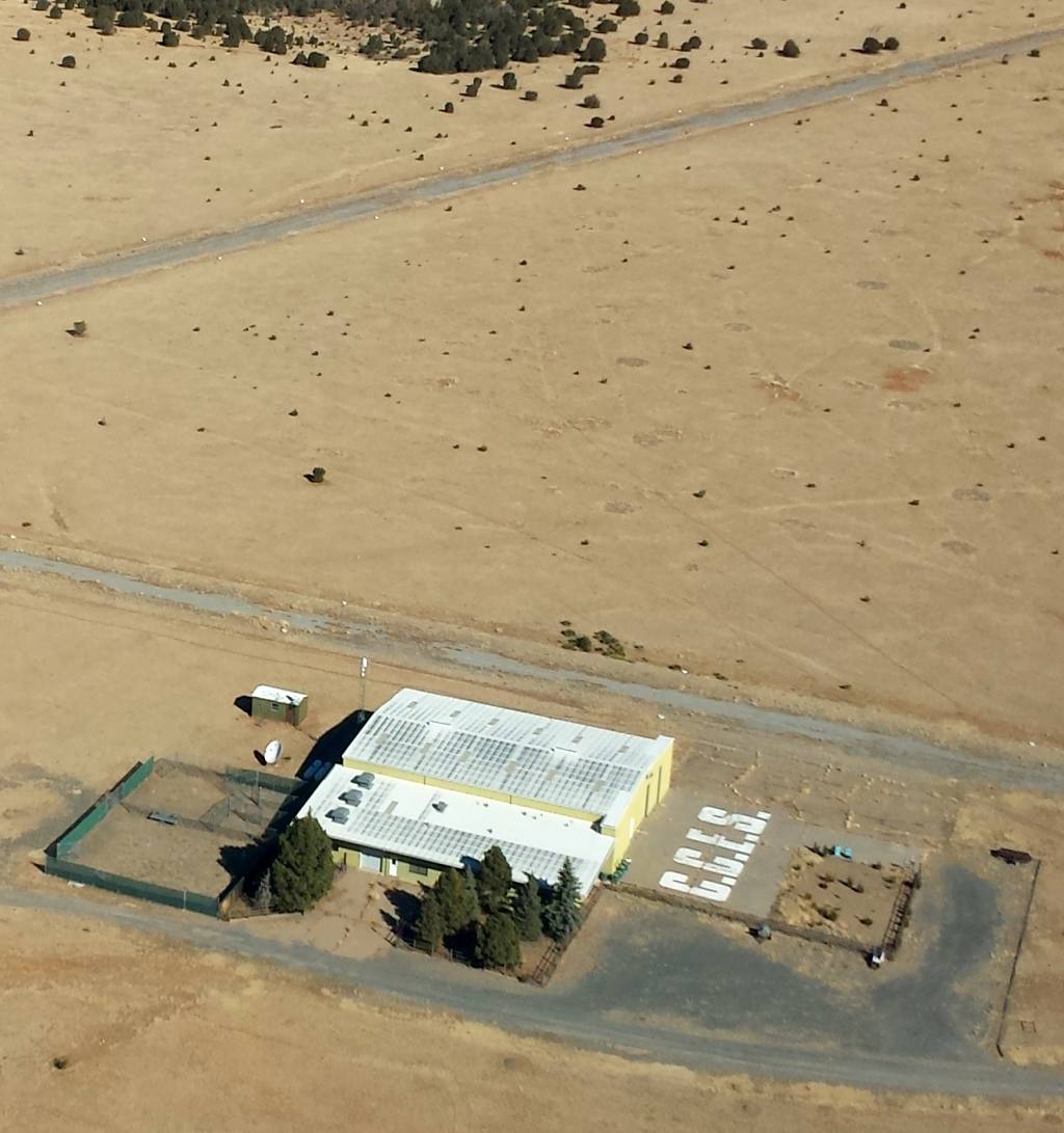 A February 2014 aerial view looking north at the CCES airfield.