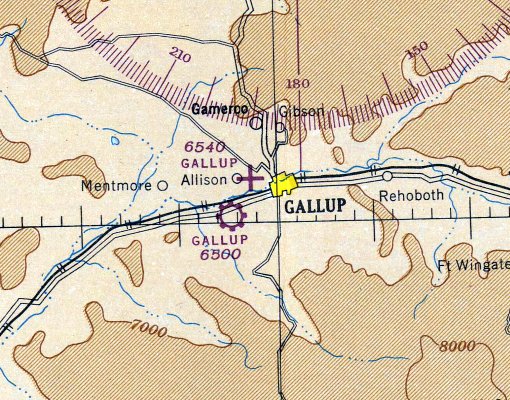 It depicted the original Gallup Airport as an auxiliary airfield, located east of Allison,