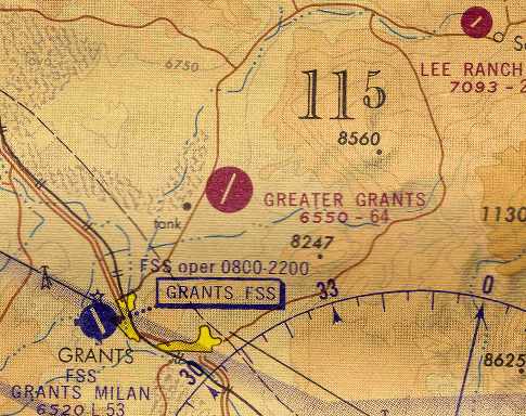 The last aeronautical chart depiction which has been located of the Greater Grants Airport as an active airfield