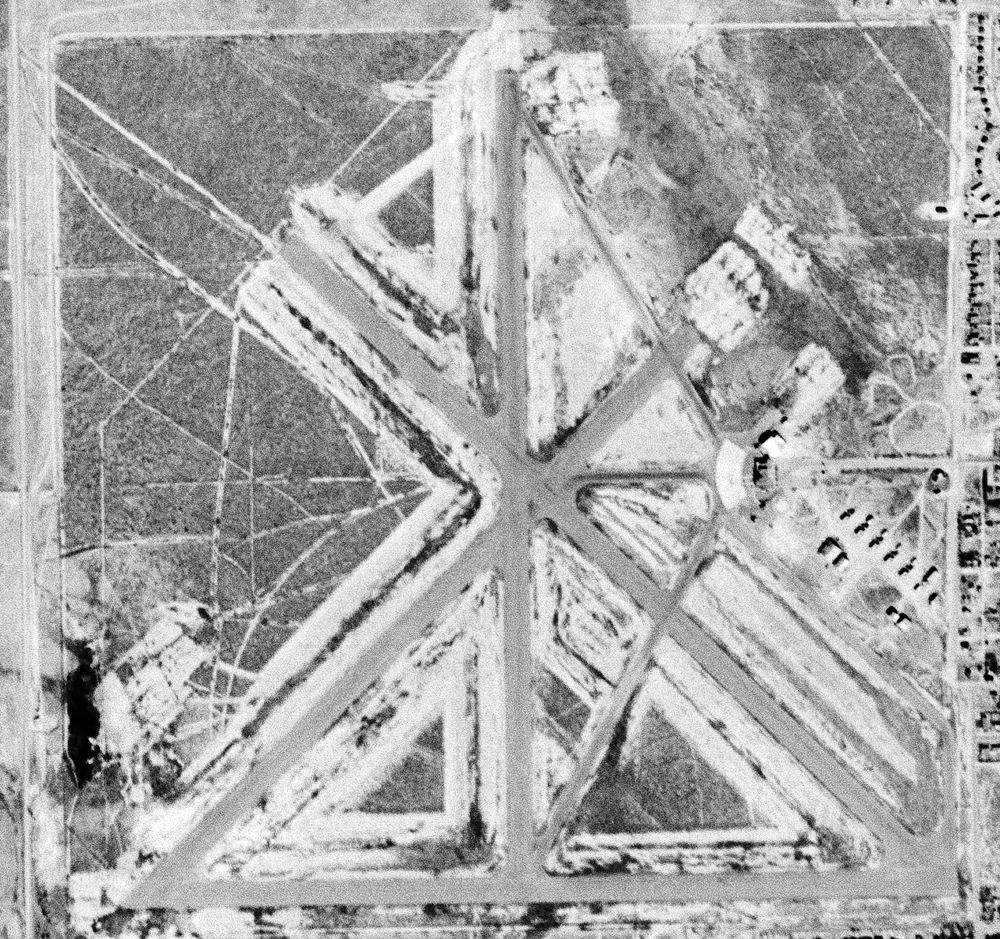 The property of the former airport was still largely intact, and the outlines of the former runways were still recognizable.