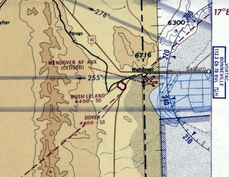 The last aeronautical chart depiction which has been located of Dover Airport was on the May 1971 Salt Lake Sectional Chart (courtesy of Ron Plante).