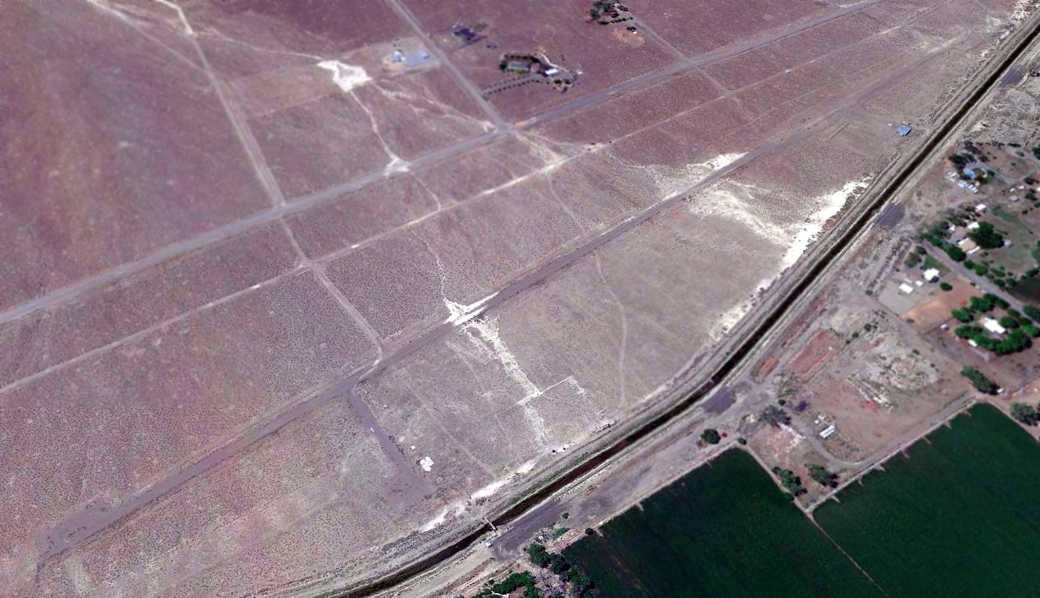 A 2009 photo looking north showed the former Lovelock Airport northeast/southwest runway, and a former hangar remaining on the southeast corner.