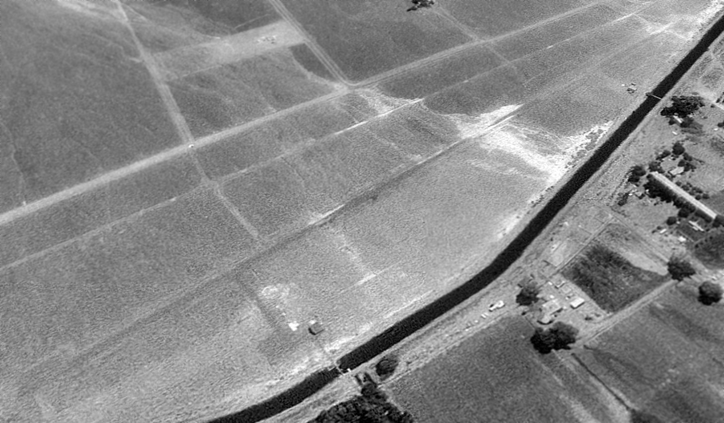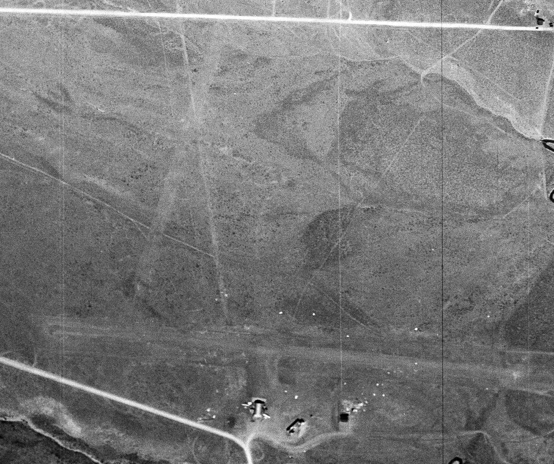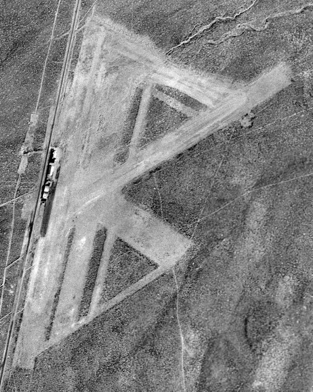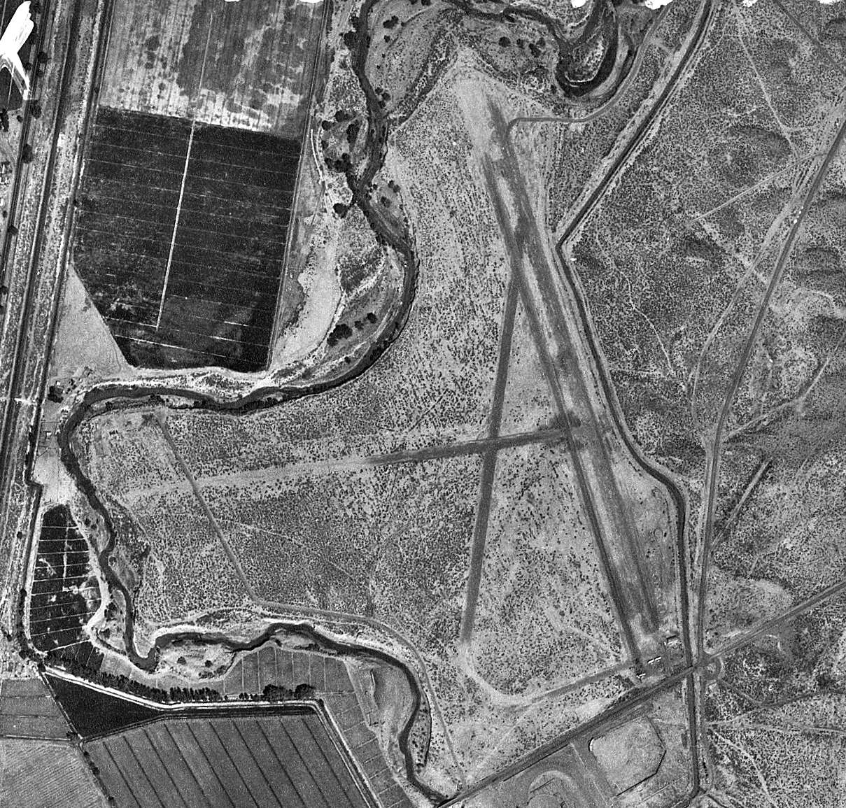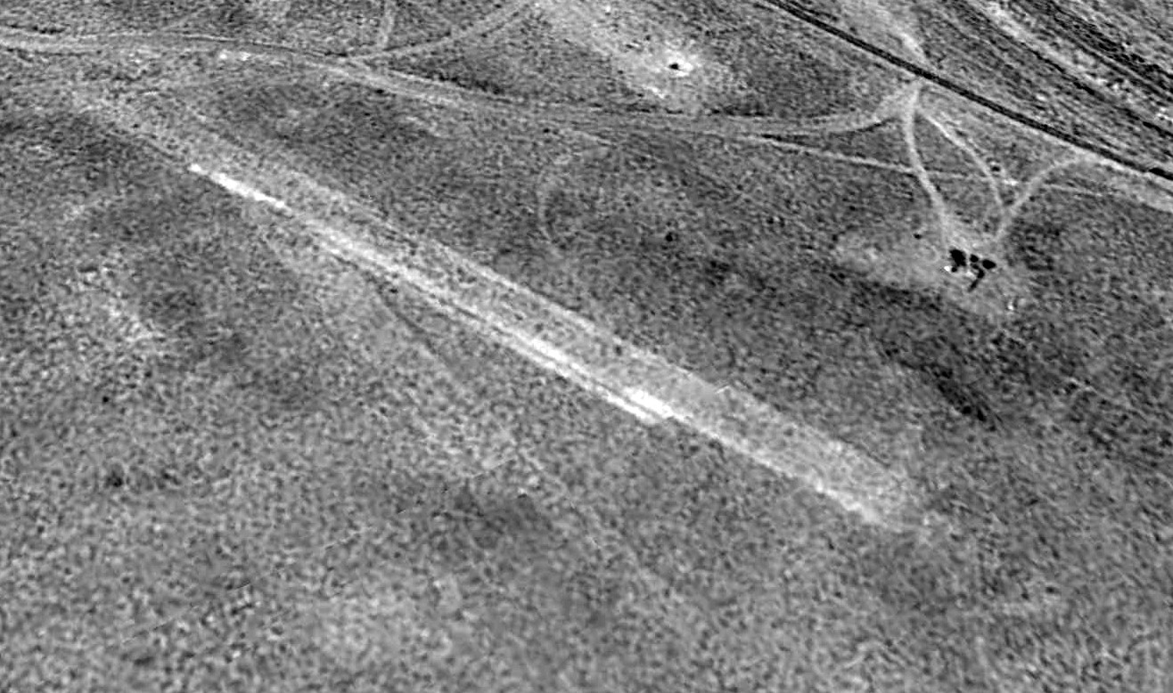 A 1994 USGS aerial view looking northeast at the site of Sutcliffe Airfield showed the barely-discernible trace of 2 runways.