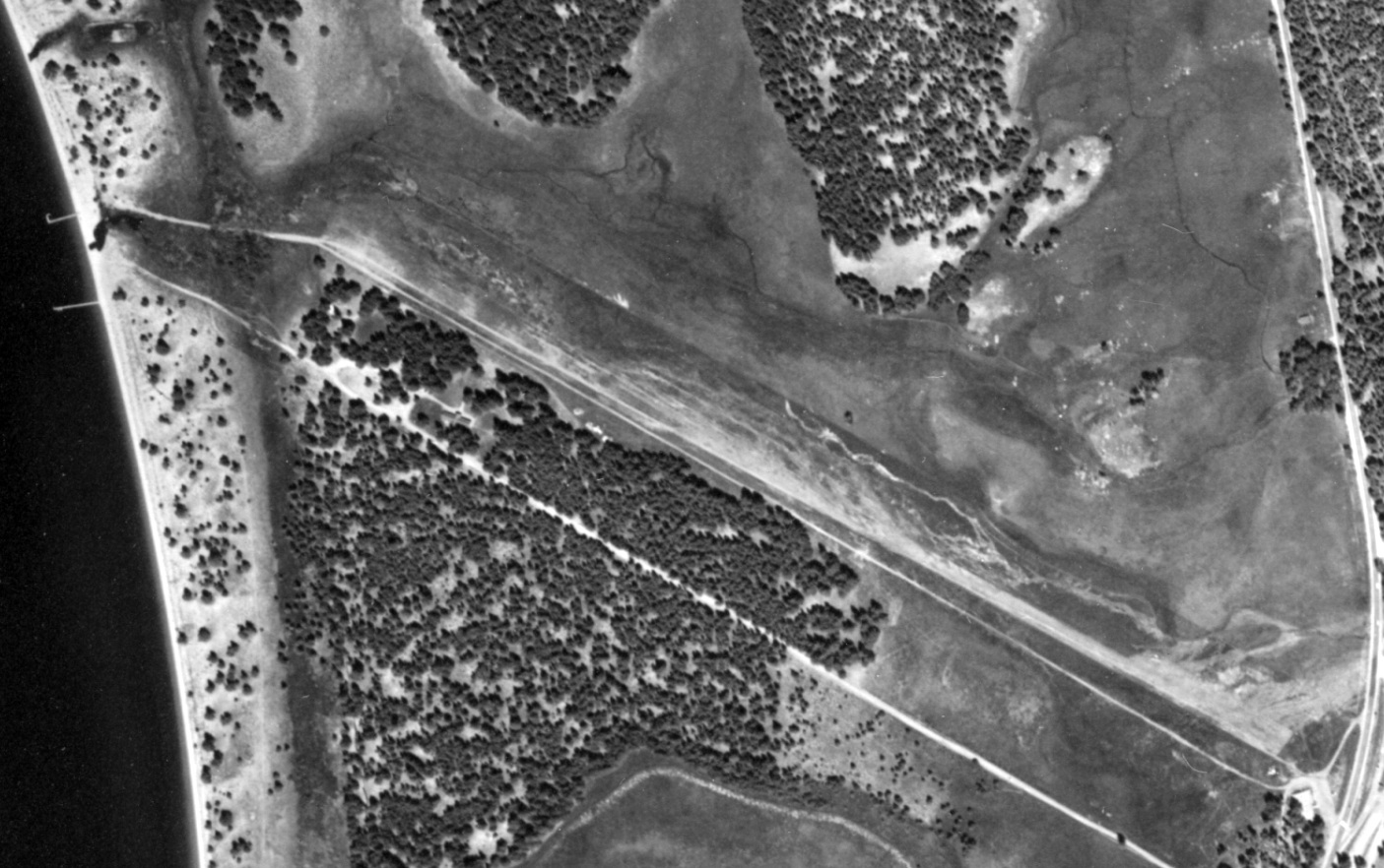 Two shorter unpaved runways remained on the south side of the highway.