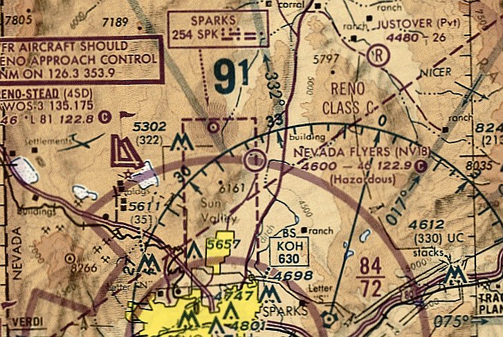 Nevada Flyers Airfield, as depicted on the October 1993 San Francisco Sectional Chart (courtesy of Ron Plante).