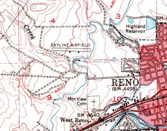 Reno Skyline Airport, as depicted on the February 1948 Reno Sectional Chart.