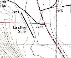 It showed 3 shorter unpaved runways on the south side of the highway, generically labeled as “Landing Strips”.