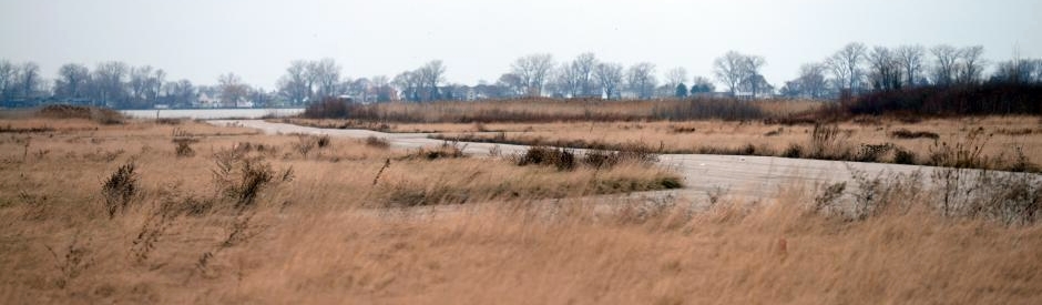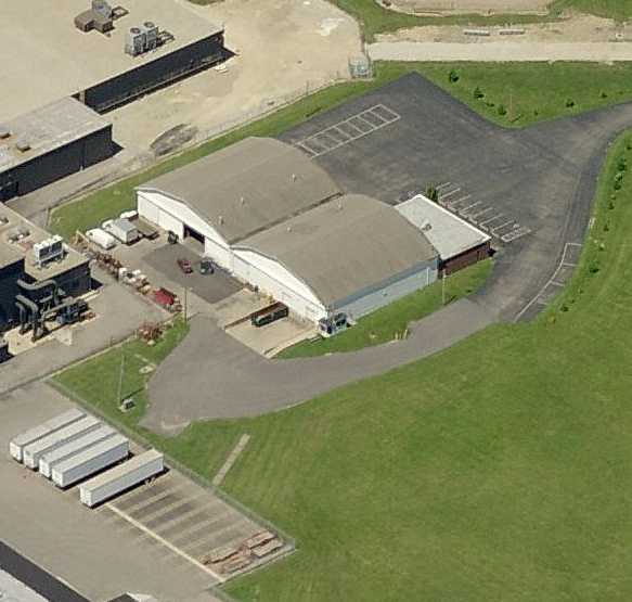 with the former airport buildings having been replaced by a parking lot for the industrial facility which covered the majority of the airport site.