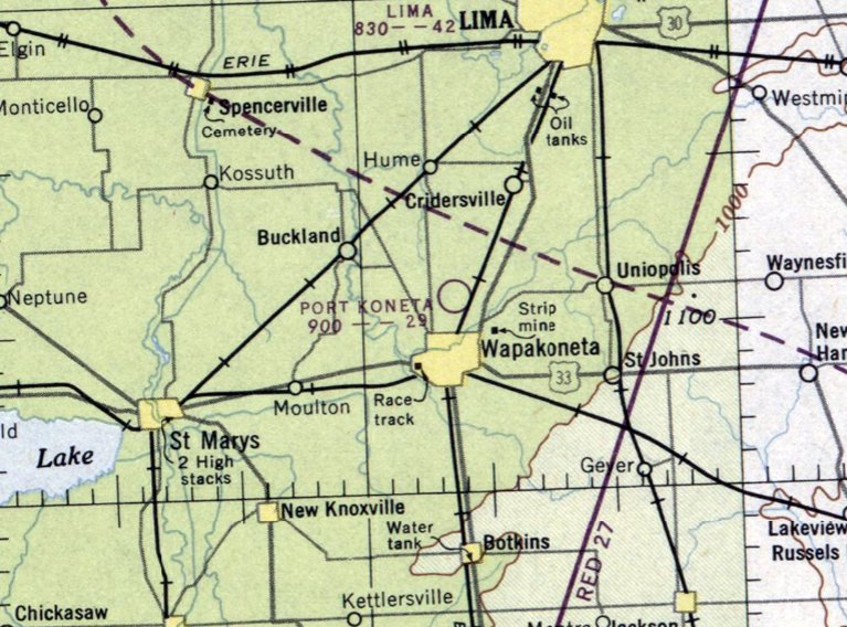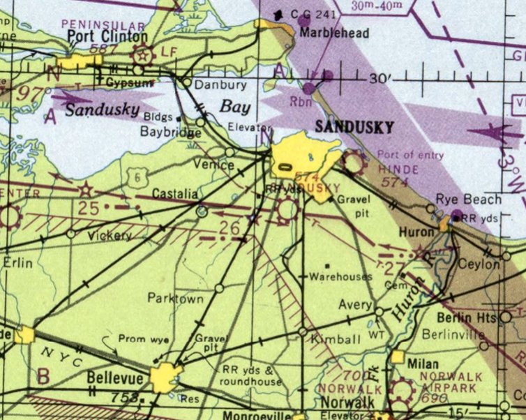 To confuse matters, there was also another Sandusky Airport depicted on the east side of the town.