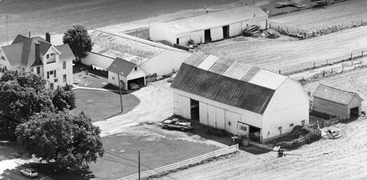 A 1966 aerial photo depicted Ellington Aircraft Salvage at perhaps its zenith of usage, with over 2-dozen light single-engine & twin-engine aircraft on the property.