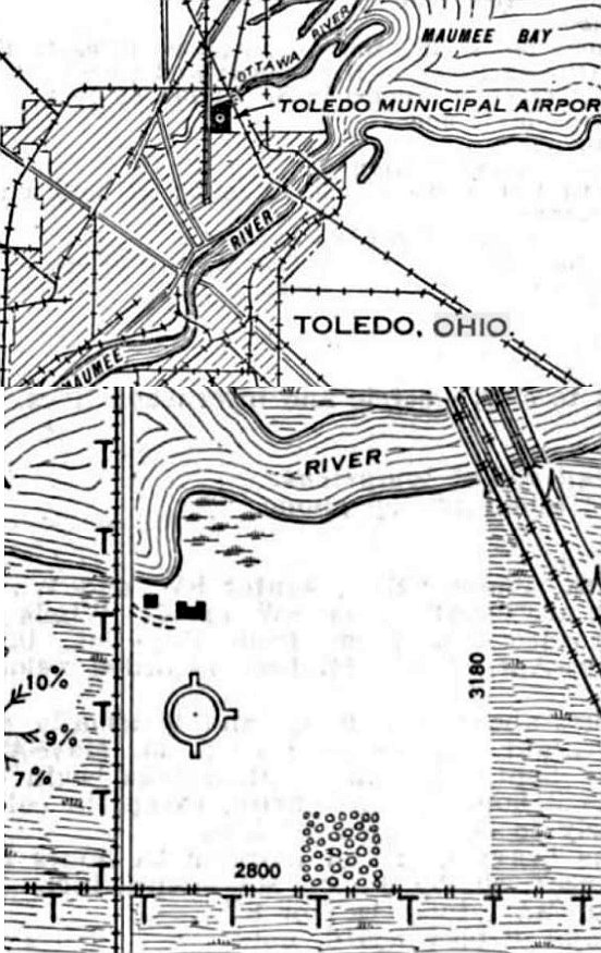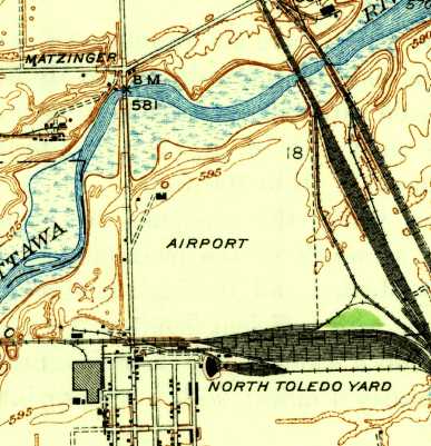 as the 1949 & subsequent Sectionals depicted Sandusky Airport on the opposite (east) side of the river & railroad, about a half-mile east.