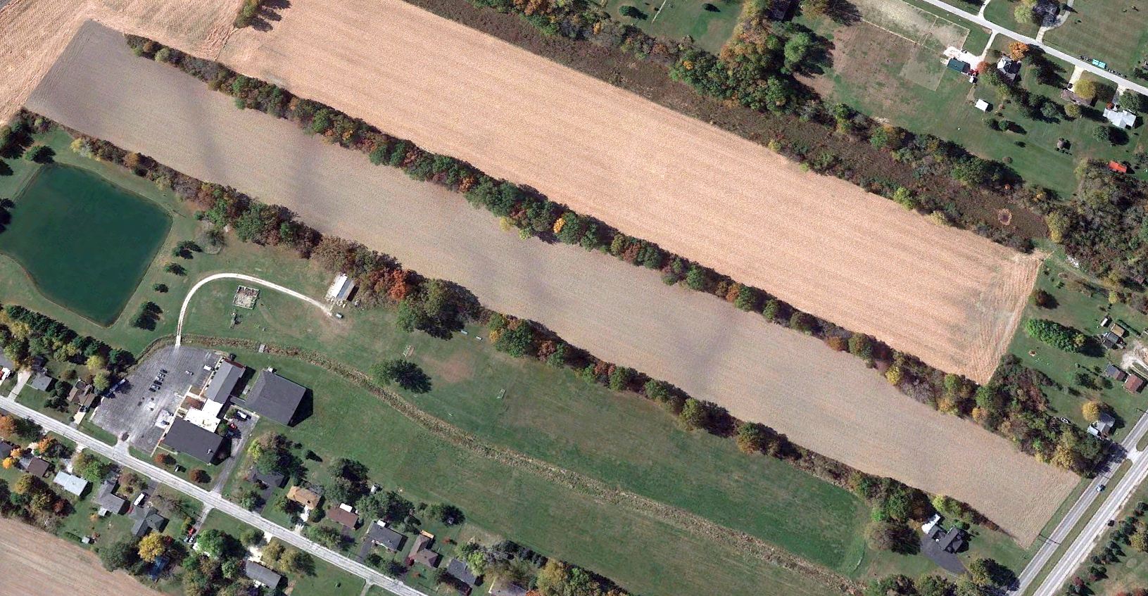 A 2015 aerial view looking southwest showed the former Slager Airport runway remained clear, but under cultivation.