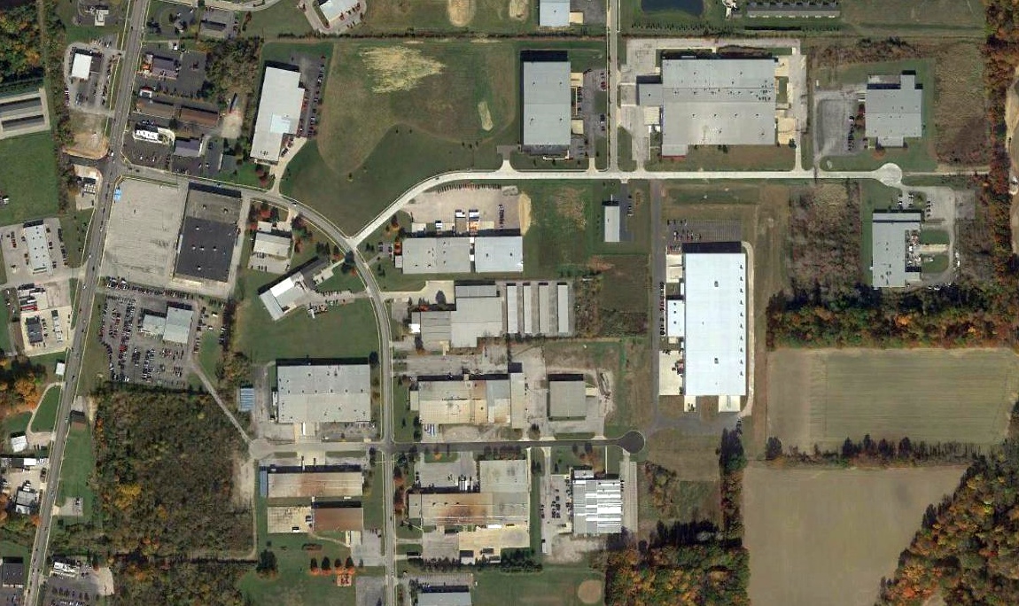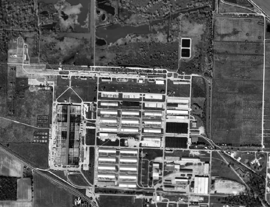 By this point the Goodrich company was reused the former Waco factory (upper-left), and had added a significantly larger facility (top-right).