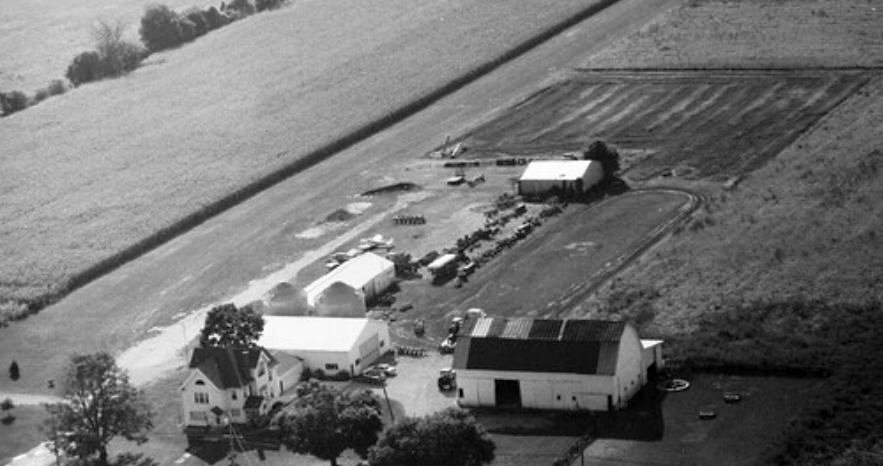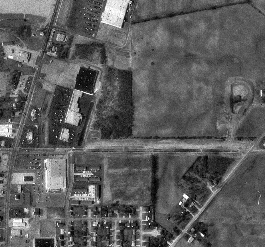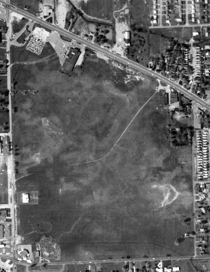 A 1983 aerial view looking east at the Troy-Waco Airport site (courtesy of Dennis Thompson).
