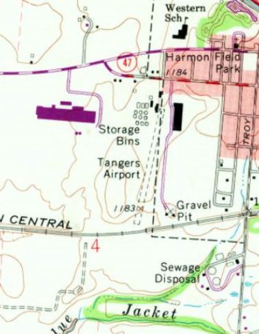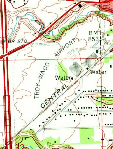 The last topo map depiction which has been located of the Troy-Waco Airport was on the 1961 USGS topo map.