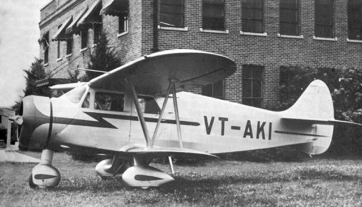 A 1938 photo of Waco ZVN-8 VT-AKI C/n 5026 in front of the Waco Troy administration building.