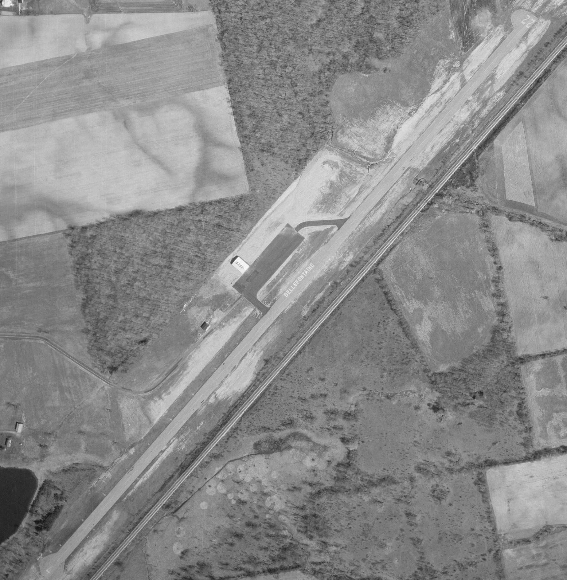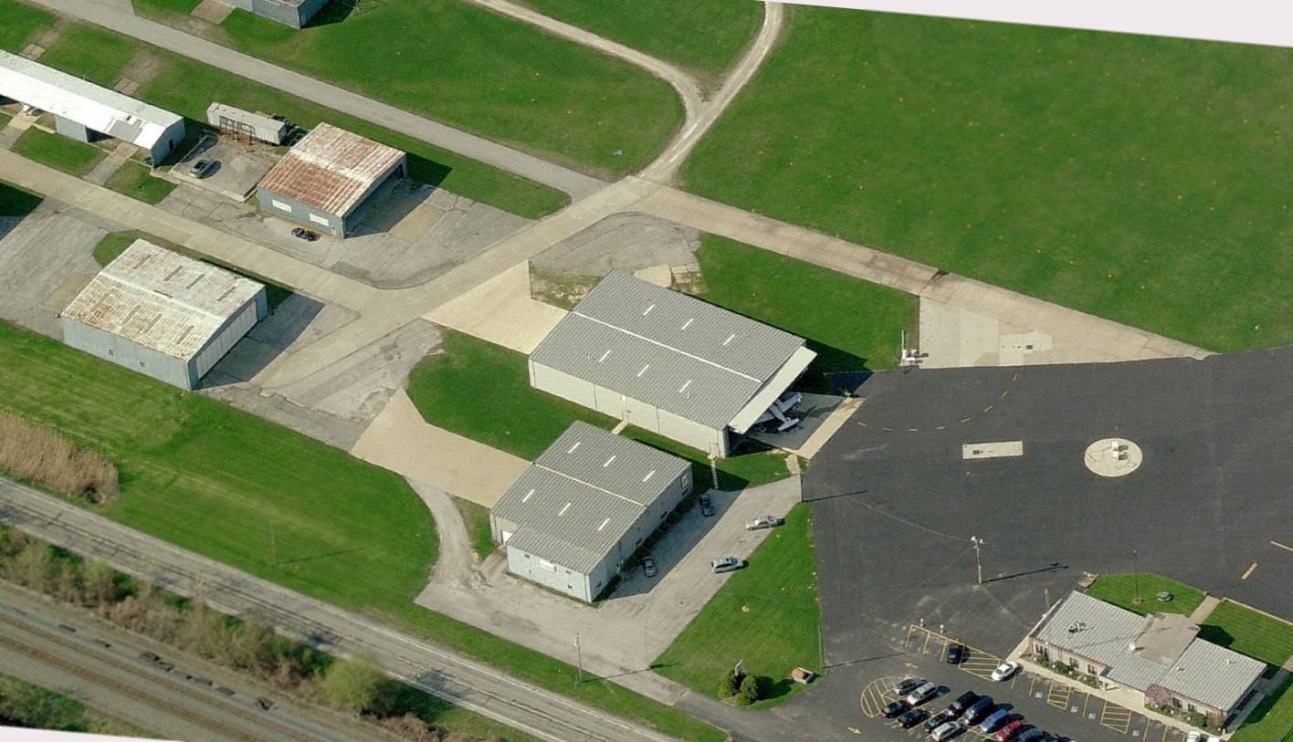 The earliest photo which has been located showing Bellefontaine Airport while in operation was a 1982 aerial view (courtesy of Dennis Thompson), which showed 5 light single-engine aircraft on its ramp.