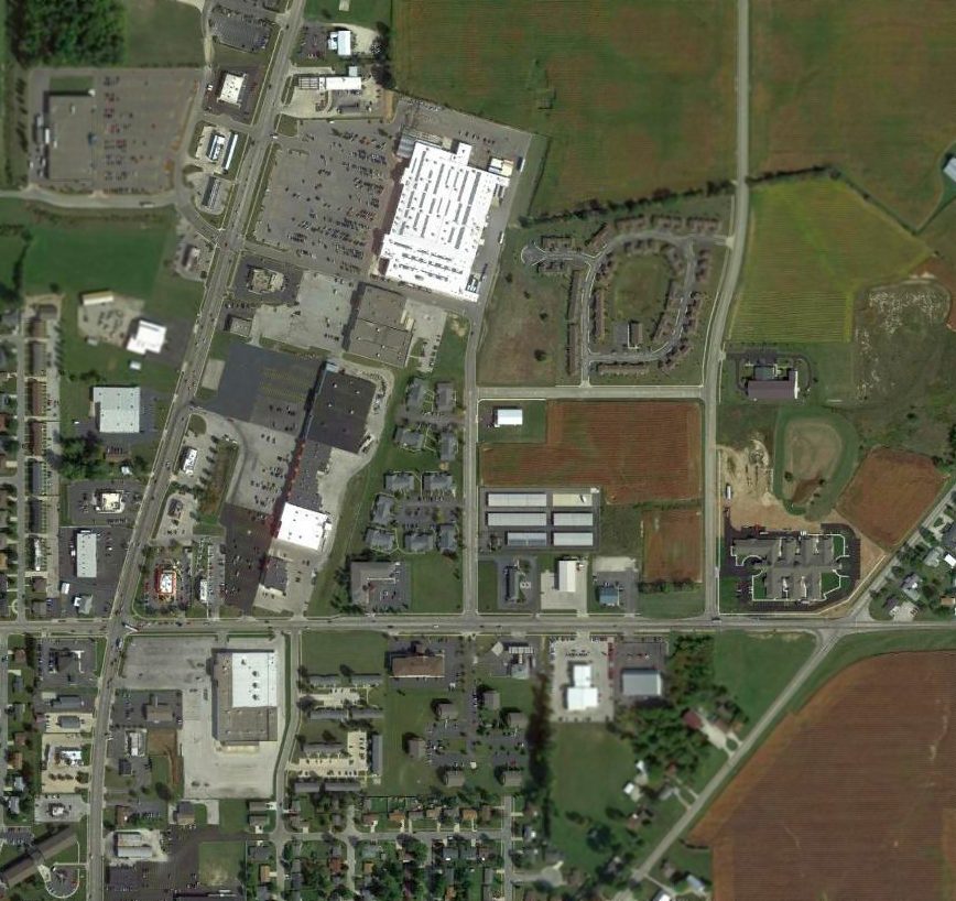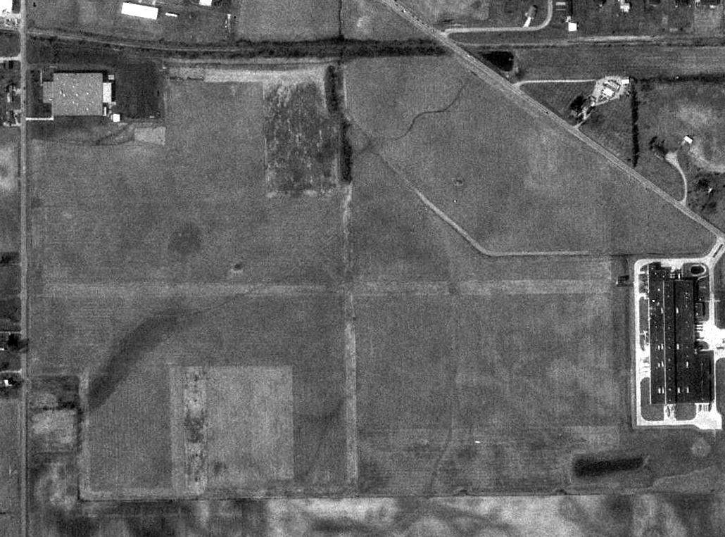 A 2015 aerial view looking north showed no trace remaining of the 1st location of Slager Airport.