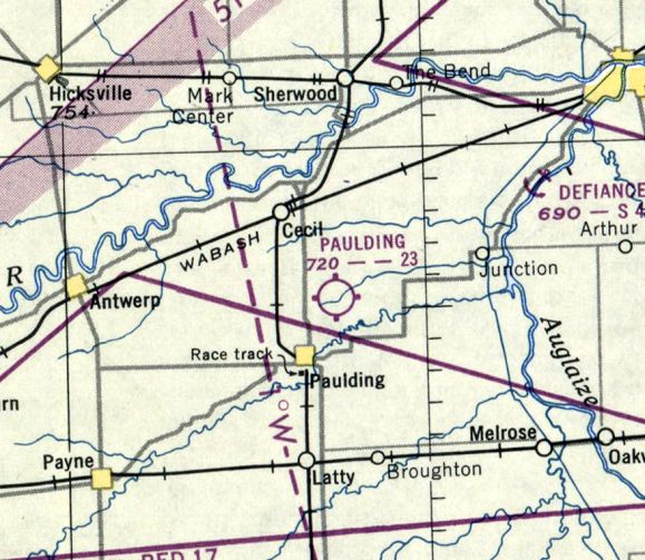The last aeronautical chart depiction which has been located of the 1st location of Slager Airport was on the January 1957 Cleveland Sectional Chart.