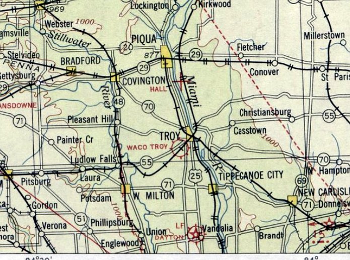 The last aeronautical chart depiction which has been located of the Troy-Waco Airport was on the May 1965 Chicago Sectional Chart.