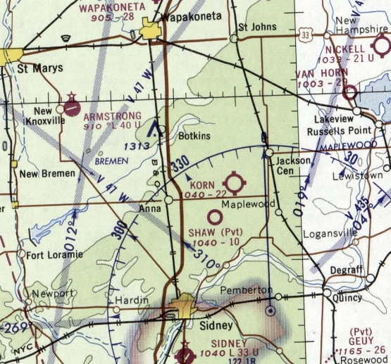 The earliest depiction which has been located of Bellefontaine Airport was on the May 1967 Cleveland Sectional Chart.