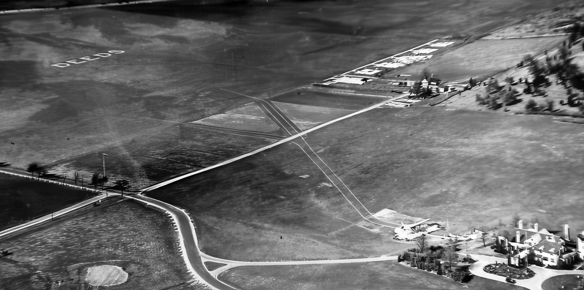 A 2016 aerial view looking west showed that Tyler Airport's original hangar remained standing, and the grass runway remained clear.