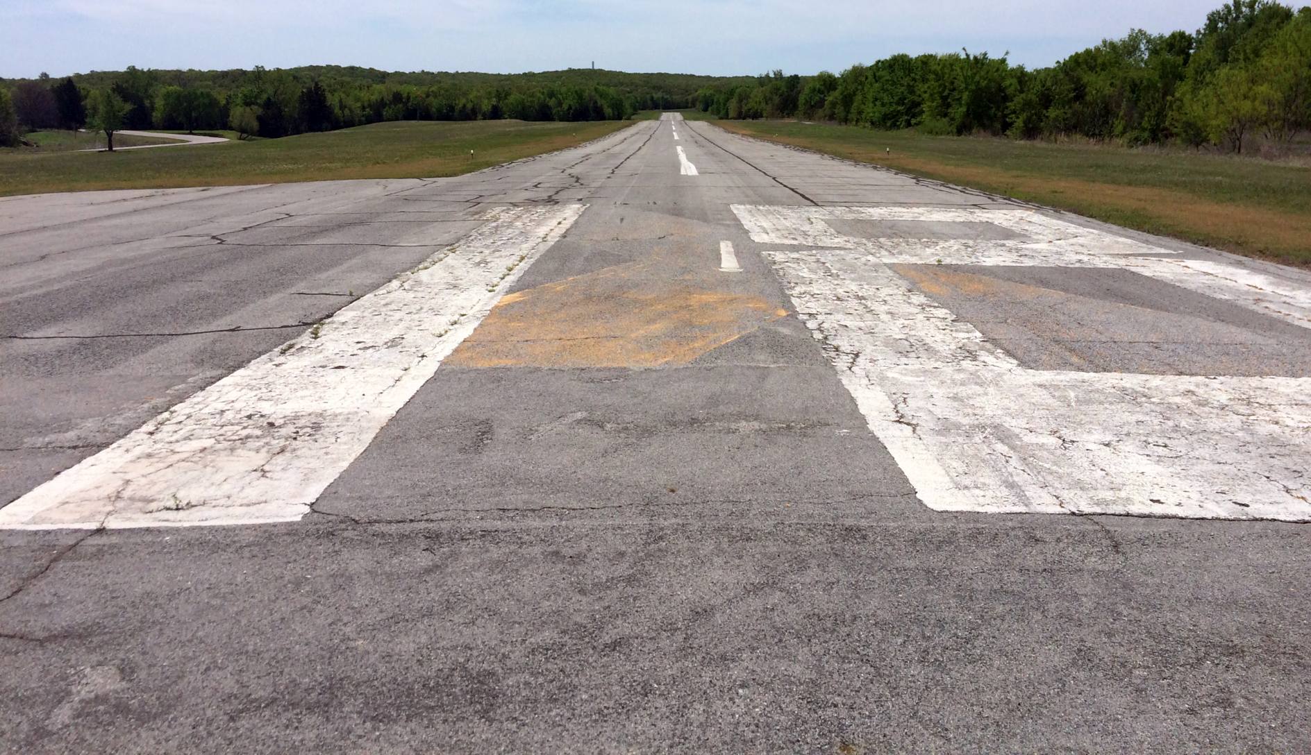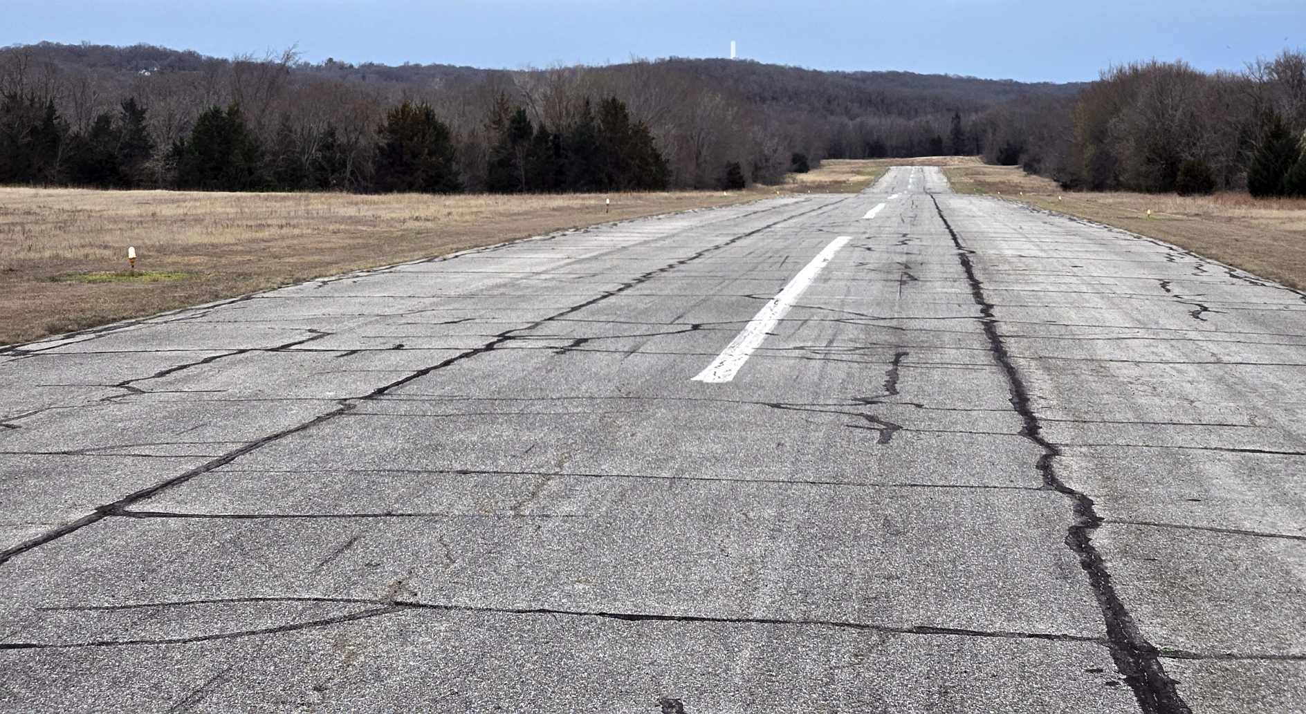 A 2023 photo looking north along the former Hatbox Field Runway 35.
