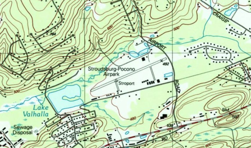 as the 1968 USGS topo map depicted Stroudsburg-Pocono Landing Field as having a single unpaved northeast/southwest runway,
