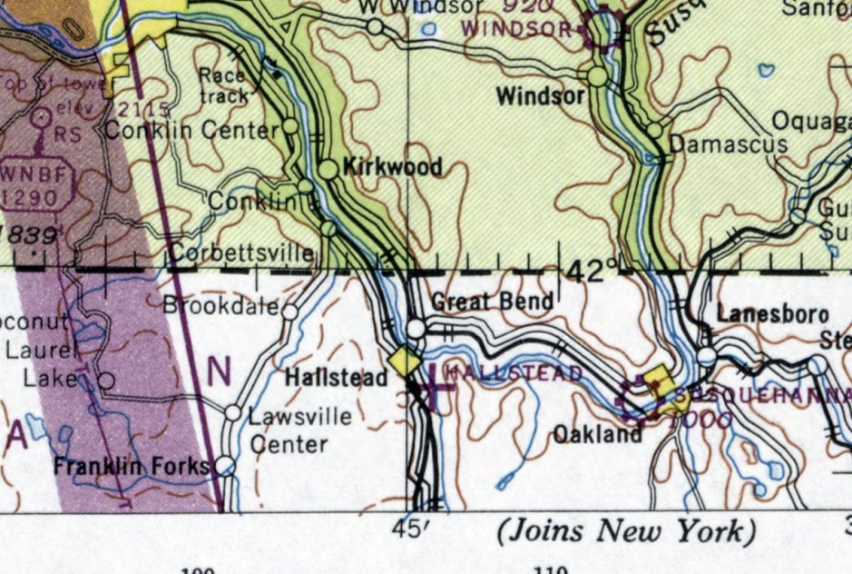 The last depiction which has been located of Nicholson Airport was on the 1952 NY Sectional Chart (courtesy of Curtiss Gay),