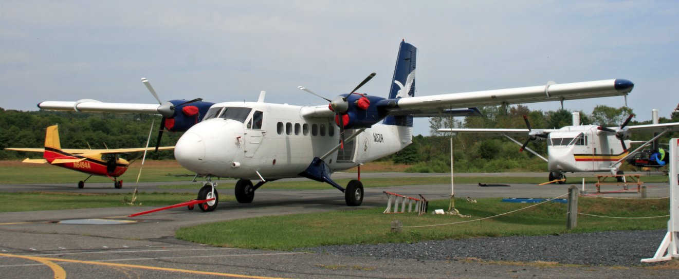 A July 2015 photo of a Cessna Caravan, Shorts Skyvan, and Twin Otter at Stroudsburg-Pocono Airport.