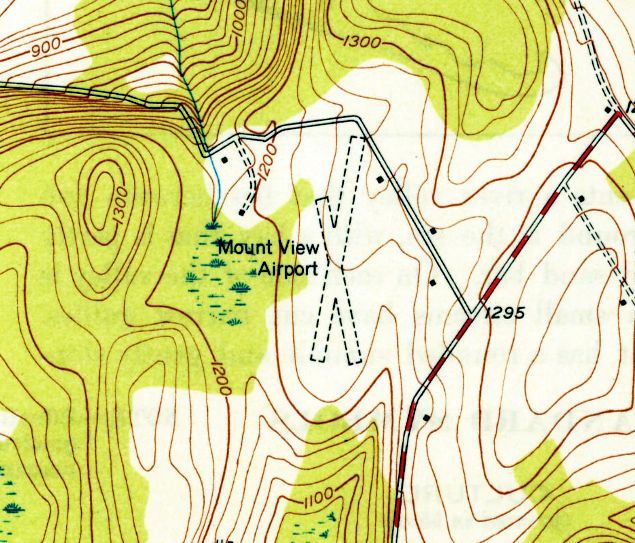 A 1950 airport directory described Mount View Airport as having 2 runways with the longest being 2,250', and selling 80 octane fuel.