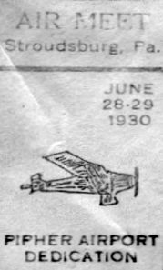 A postmark commemorating the 6/28/30 Pipher Airport Dedication (courtesy of Fred Kelso).
