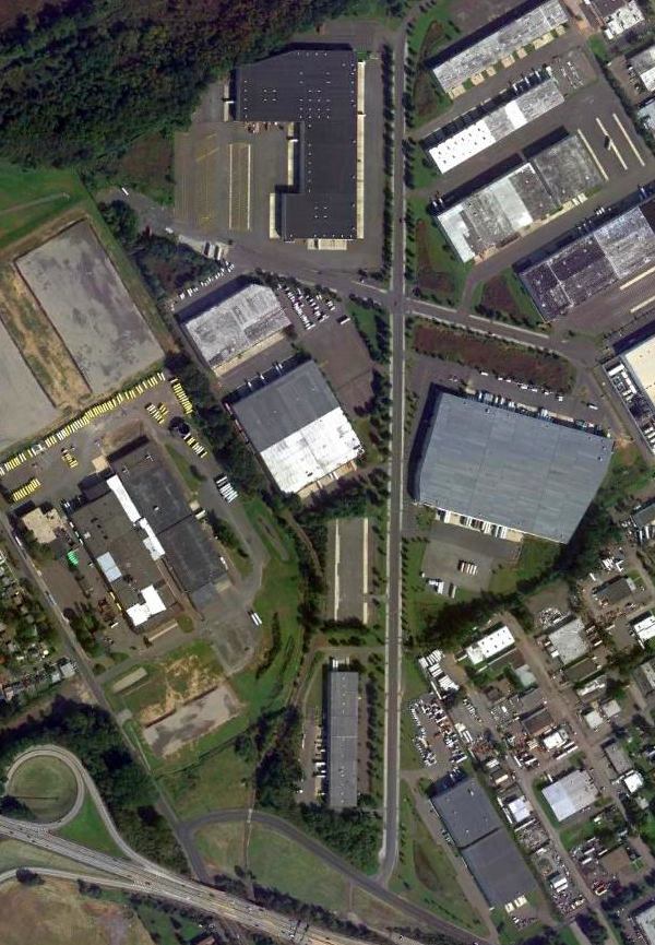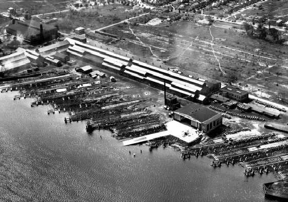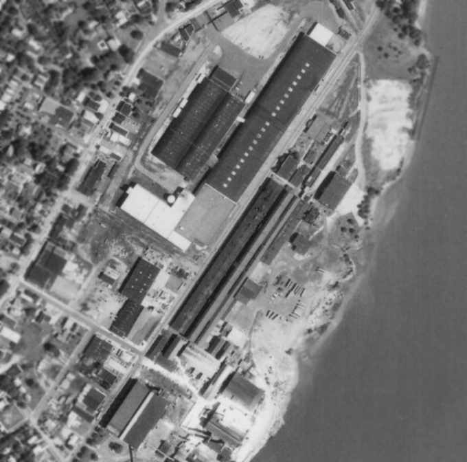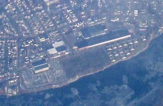The former Kaiser-Fleetwings aircraft factory was also still standing, visible in the right side of the photo.