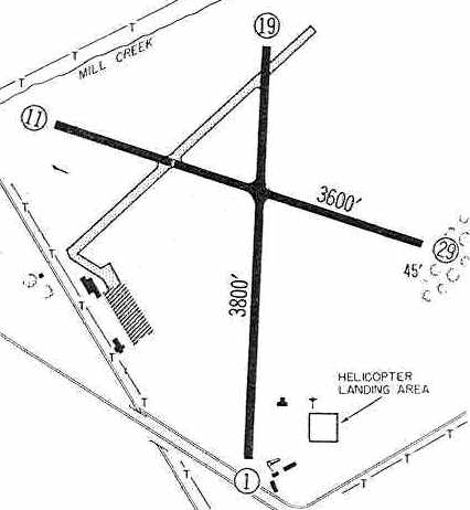 It depicted the field as having 2 grass runways, with a few small hangars & 7 single-engine aircraft on the northeast side.