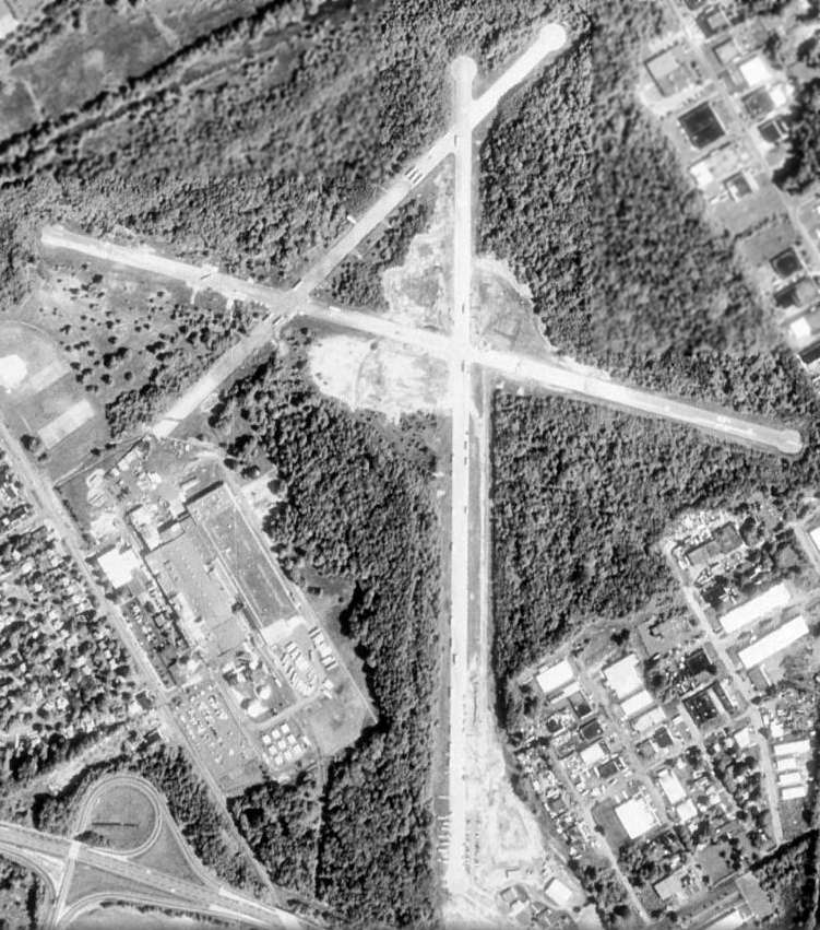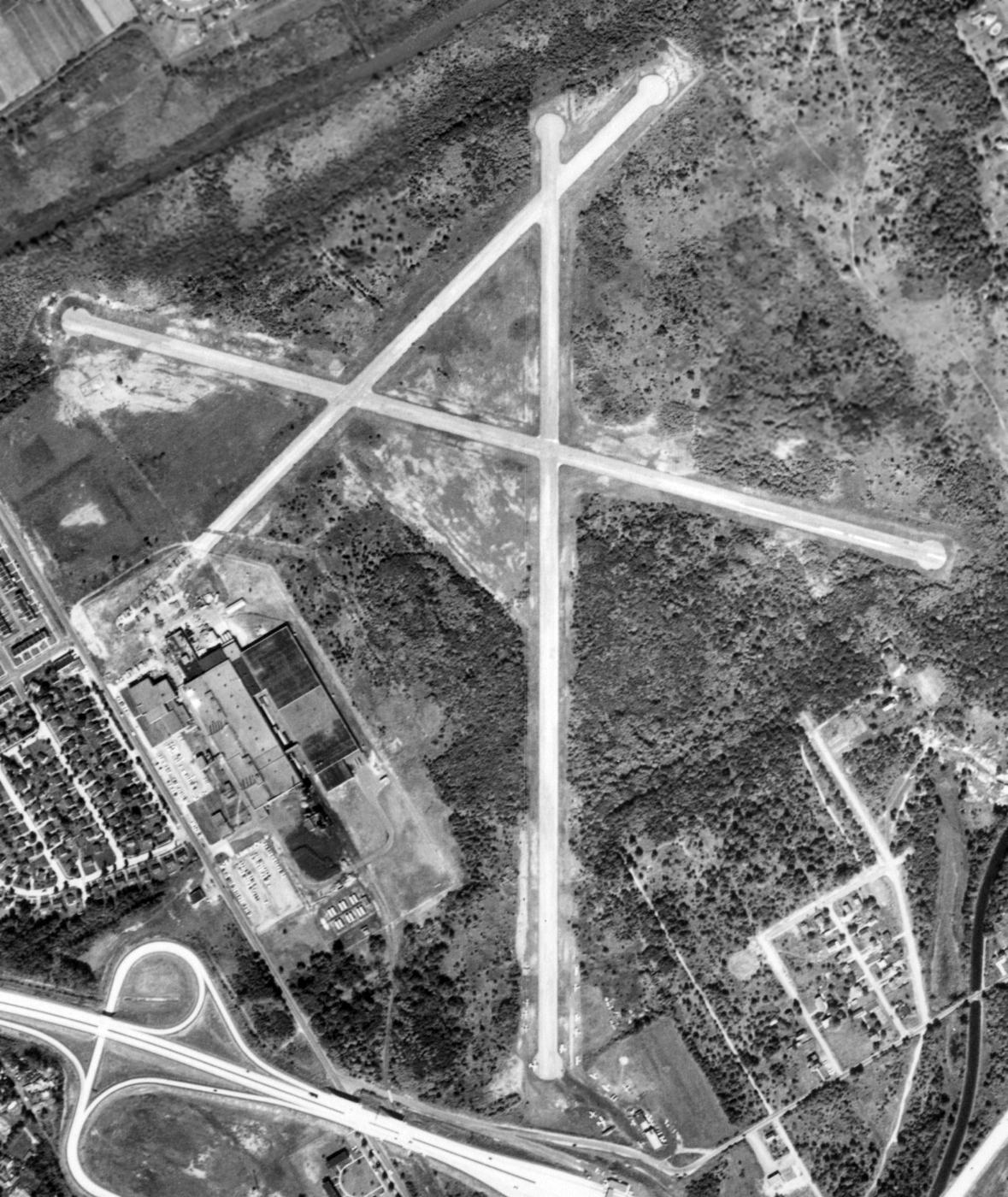 In a 4/25/92 USGS aerial photo, all 3 runways at 3M Airport still remained largely intact,