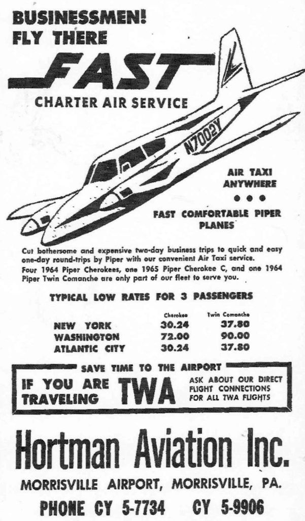 A circa 1960s advertisement for Hortman Aviation at Morrisville Airport (courtesy of Robert Hedden).