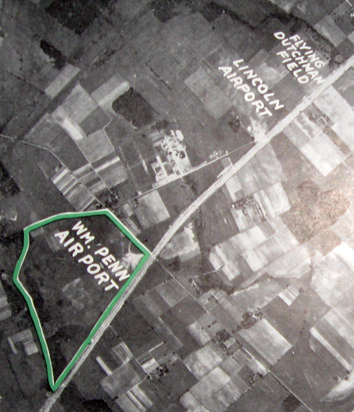 A 1947 aerial view of Morrisville Airport depicted the field as consisting of a single east/west grass runway,