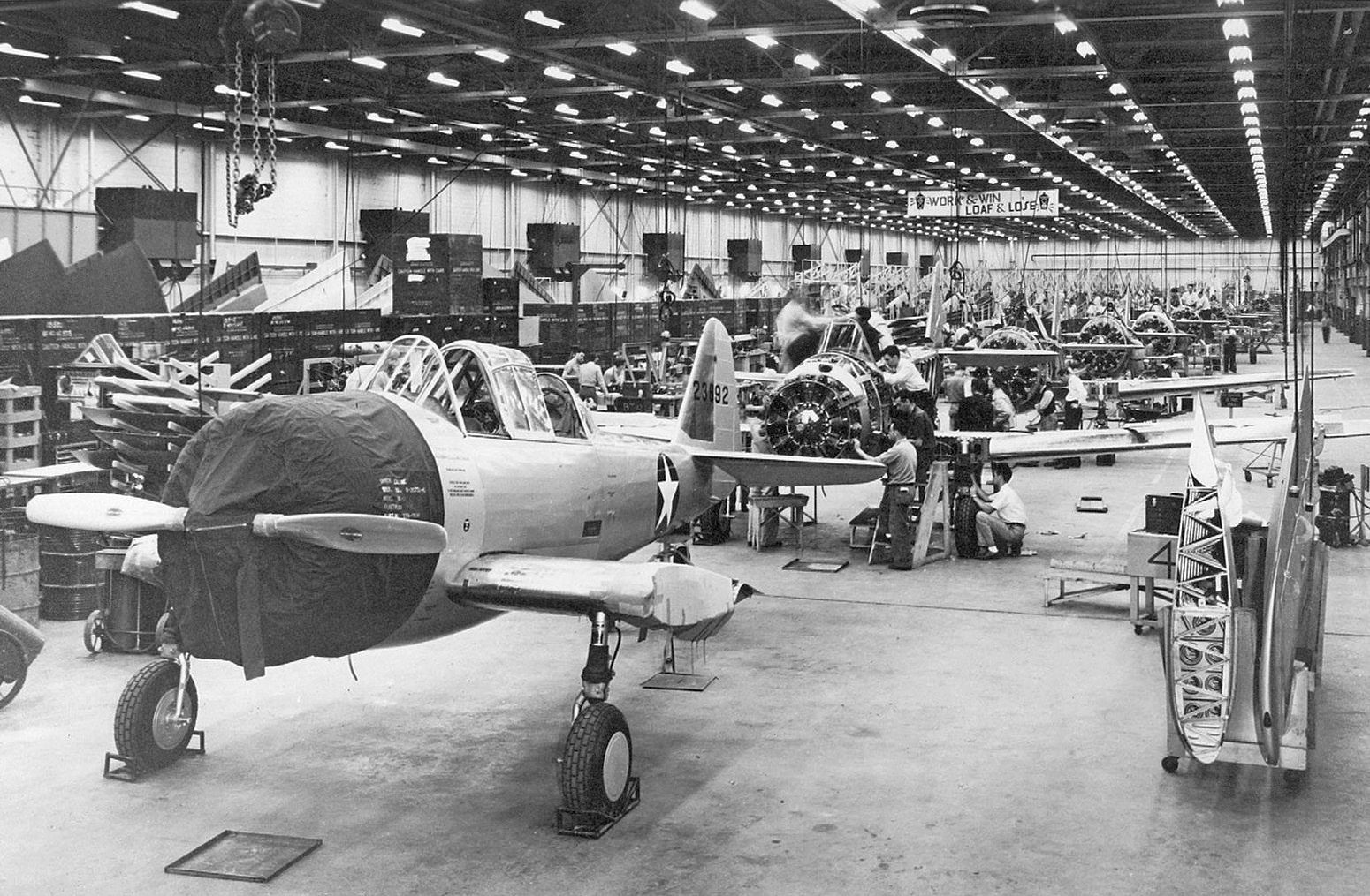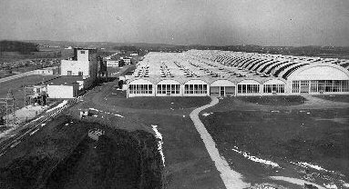 The former Kaiser-Fleetwings aircraft factory along the west side of the field also remained intact.