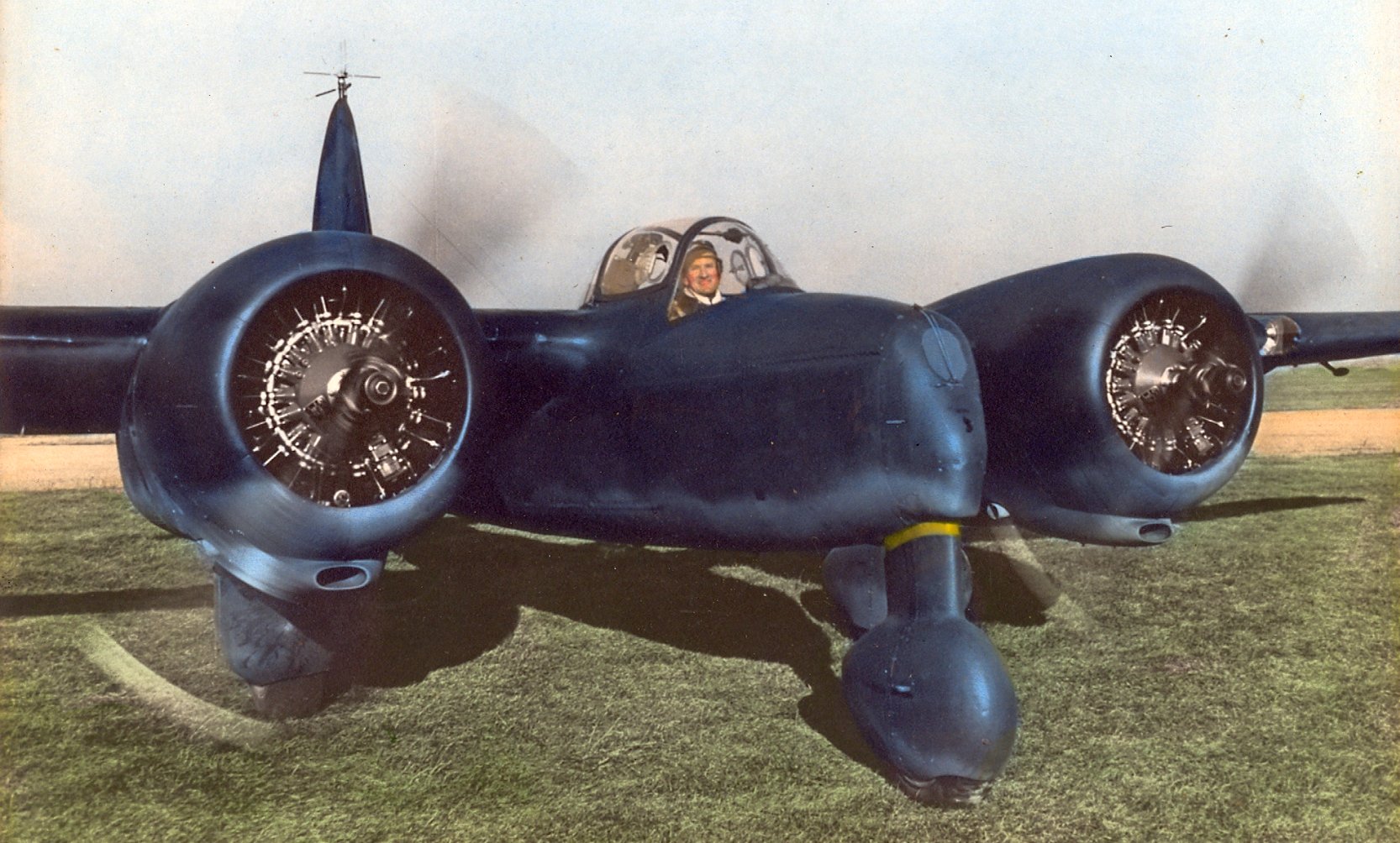 like a WWI plane with a rotary engine crouping,