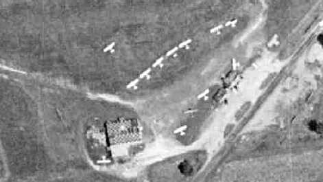 with a single hangar on the southeast side, around which were parked a dozen light aircraft.