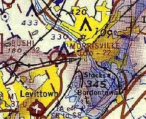 Morrisville Airport, as depicted on the 1947 USGS topo map.